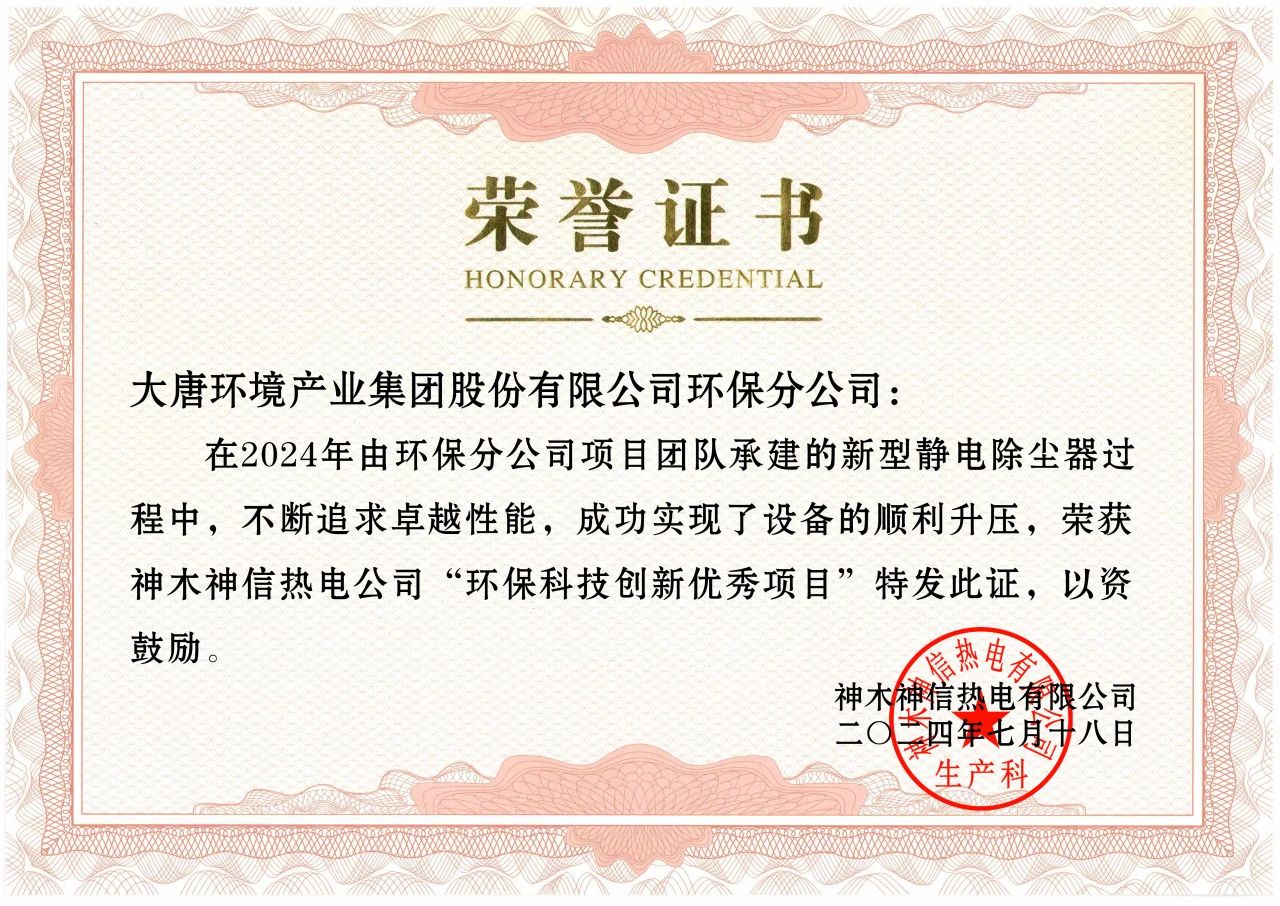 環(huán)保分公司承建神木靜電除塵項(xiàng)目榮獲“環(huán)??萍紕?chuàng)新優(yōu)秀項(xiàng)目”殊榮