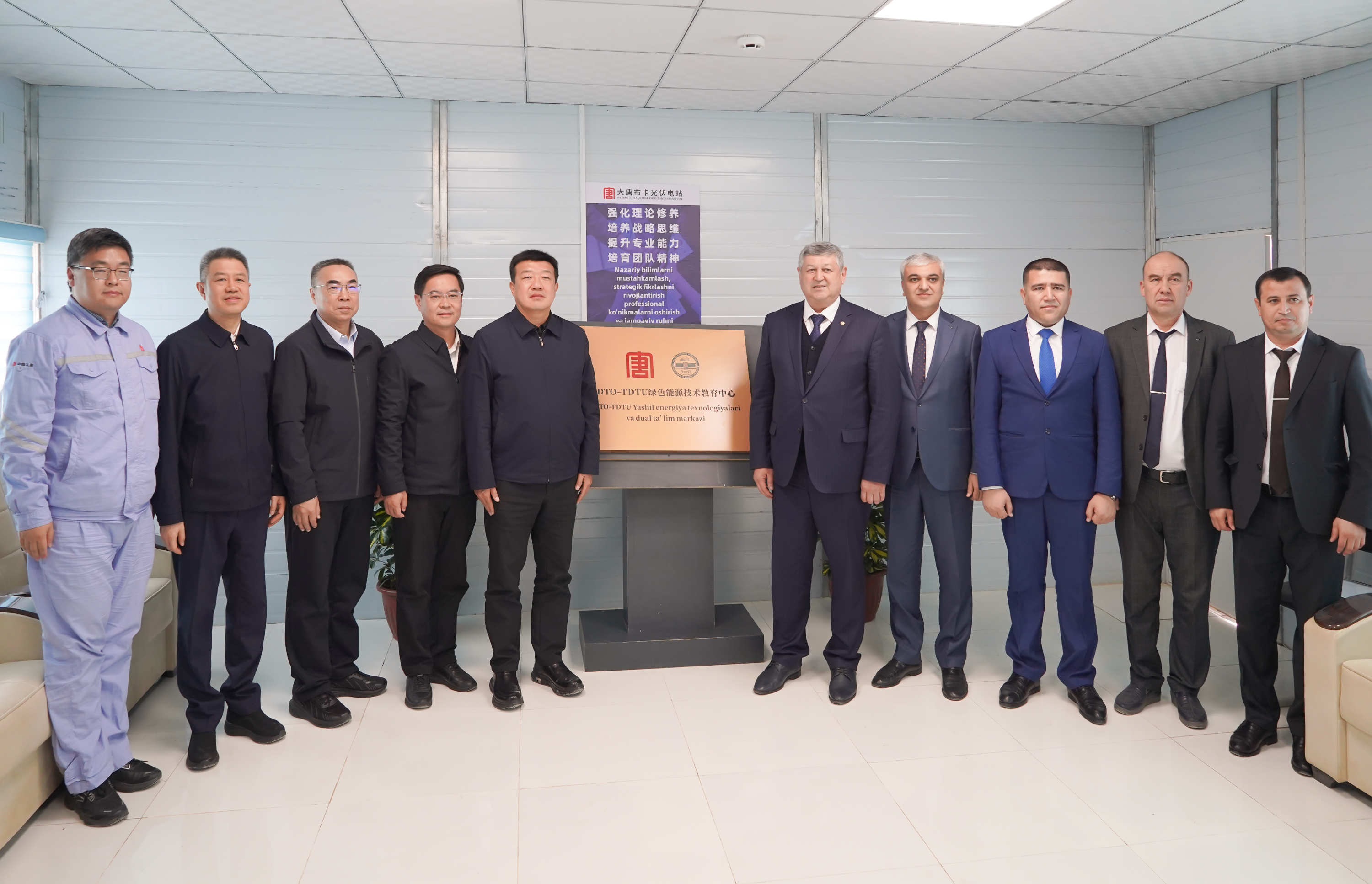 調(diào)研期間,呂軍在布卡光伏項(xiàng)目現(xiàn)場,與塔什干國立技術(shù)大學(xué)校長、院士薩德里丁·馬哈馬托維奇舉行會(huì)談,并共同為“大唐海投-塔什干國立技術(shù)大學(xué)綠色能源技術(shù)教育中心”揭牌。該技術(shù)教育中心后續(xù)將為塔什干國立技術(shù)大學(xué)畢業(yè)生提供實(shí)習(xí)實(shí)訓(xùn)機(jī)會(huì),助力烏茲能源電力人才培養(yǎng)。