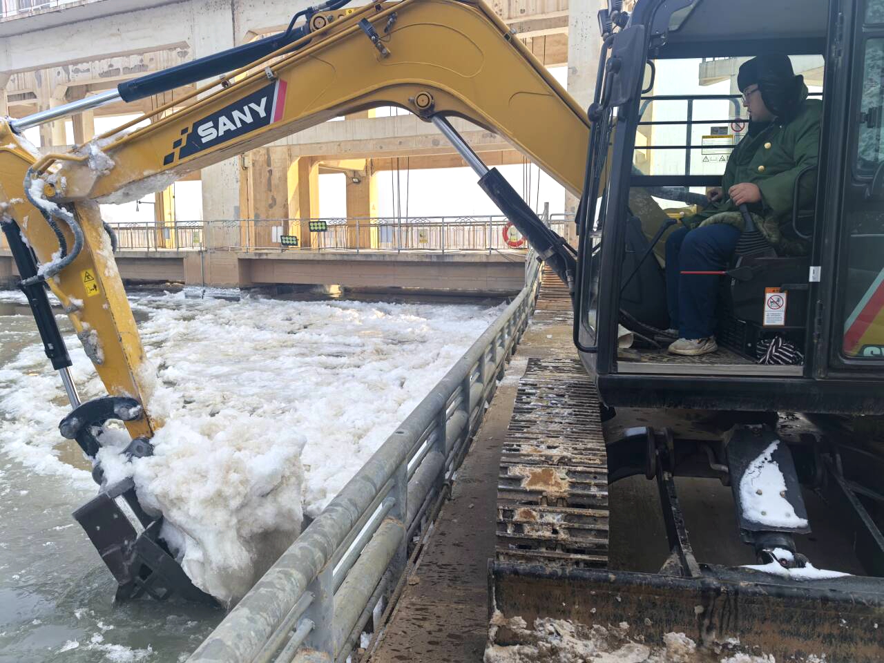 李寧駕駛著除冰機,緩緩靠近攔污柵。機器的轟鳴聲在寒冷的空氣中回蕩。他小心翼翼地操作著,確保每一次的沖擊都能精準地擊碎冰層,而不會對攔污柵造成損傷。
