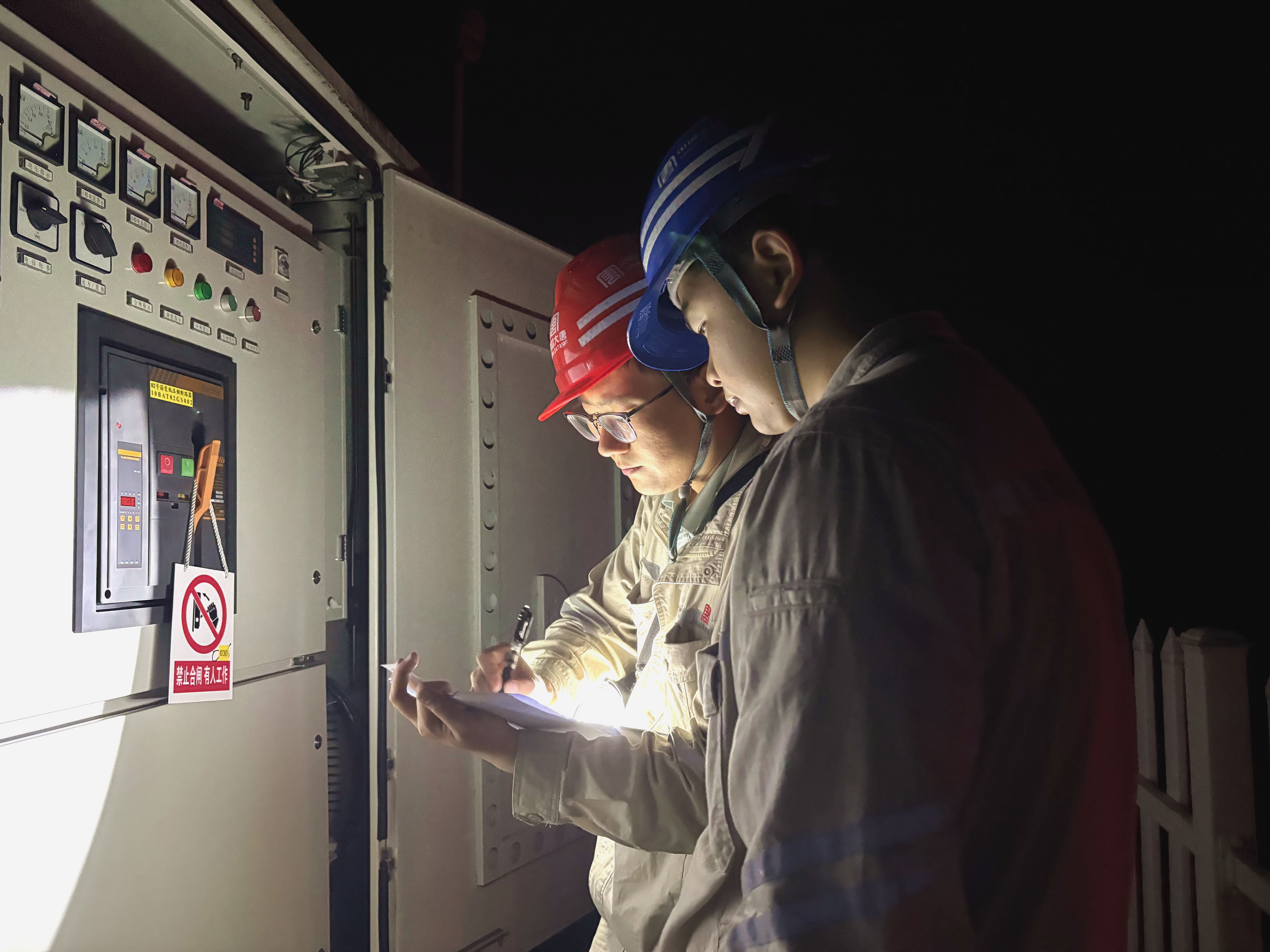 線上線下分工協作,指令與執(zhí)行同頻。23時30分,升壓站的燈光刺破雨幕,成為黑夜里最亮的坐標。