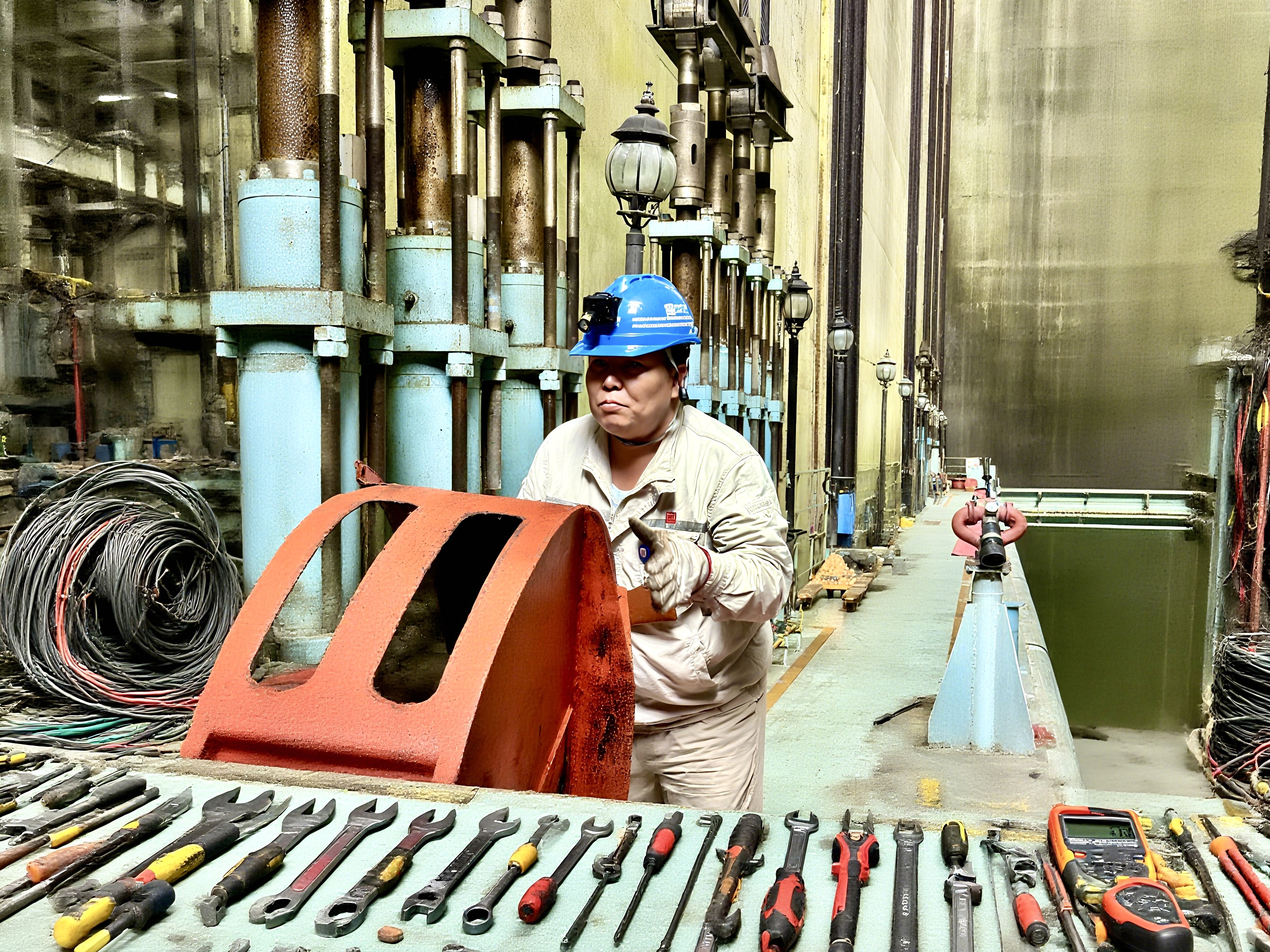 暮色漫進(jìn)升船機(jī)的間隙時(shí),工具的歸位聲在廊道間清脆回響。樊師傅用老棉布最后擦拭扳手,鍍鉻層磨出了歲月的啞光,卻不見(jiàn)半點(diǎn)銹跡。工具車(chē)入庫(kù)時(shí),所有工具都在各自的位置上發(fā)出輕微的共鳴,就像完成了一場(chǎng)無(wú)聲的合奏。