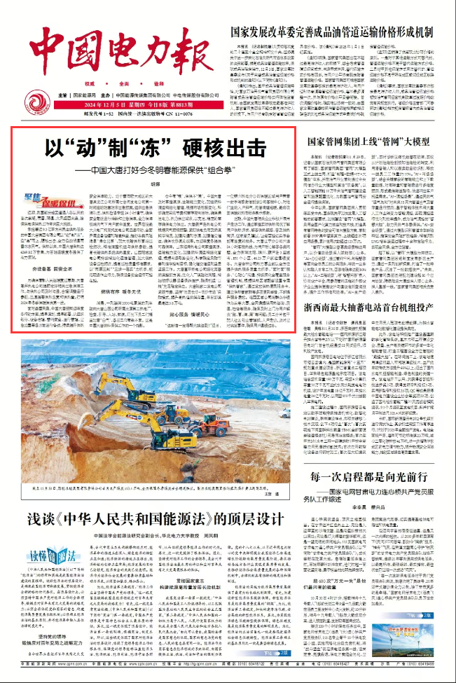 [中國電力報]以“動”制“凍” 硬核出擊——中國大唐打好今冬明春能源保供“組合拳”