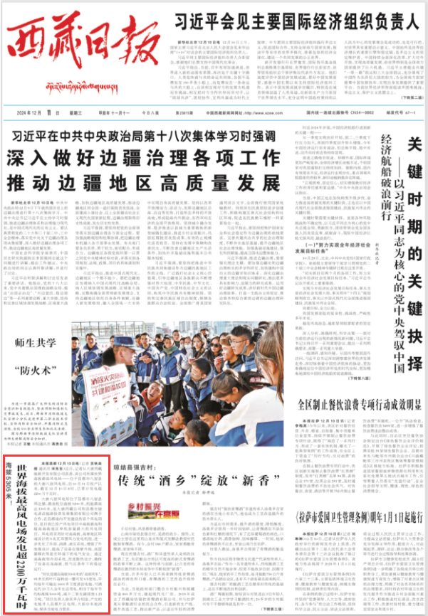 [西藏日報(bào)]世界海拔最高風(fēng)電場發(fā)電超2200萬千瓦時(shí)