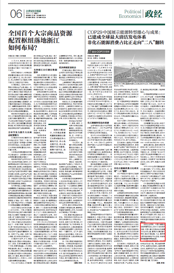 [21世紀經濟報]COP29中國展示能源轉型雄心與成果:非化石能源消費占比將“二八”翻轉,已建成全球最大清潔發(fā)電體系
