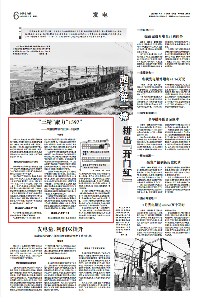 ? ? “全領(lǐng)域”向利潤“最高紀錄”進軍。瞄準全年“摸高值”,聚焦“多發(fā)效益電、多供效益熱”,科學(xué)調(diào)控發(fā)電節(jié)奏,增強現(xiàn)貨市場競爭力。精研風(fēng)電入市策略,全力沖刺利用小時數(shù)、上網(wǎng)電價、綜合熱價區(qū)域?qū)祟I(lǐng)先優(yōu)勢。“全周期”打造“為國擔當”。加快建設(shè)世界上“壓力最高、溫度最高、效率最高、煤耗最低”單軸百萬千瓦火電機組——大唐鄆城國家電力示范項目。1月,國家能源局發(fā)布第四批能源領(lǐng)域首臺(套)重大技術(shù)裝備名單,大唐鄆城項目在列。