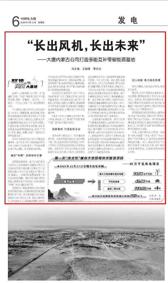 2025-6-12-6版中國電力報【長出風機長出未來】大唐內(nèi)蒙古公司打造多能互補零碳能源基地