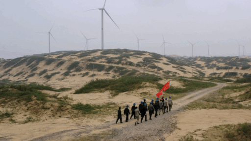 我招呼他們先把飯吃了,王鵬卻著急往風(fēng)機(jī)輪轂里鉆,他說:“換完變槳電機(jī)再吃,另外兩個(gè)同事都還在里面等我呢?!蔽蚁颡M小的通道內(nèi)探了探頭,輪轂內(nèi)的溫度竟然比機(jī)艙內(nèi)的溫度還要高,測(cè)溫槍上顯示足足有50度。我看著三位大漢面面相覷,他們臉上豆大的汗珠在瑩瑩燈光的映照下愈發(fā)顯得耀眼。 1、2、3,1、2、3,他們憋紅著臉,合力將一百多斤的電機(jī)抬下,再用安全繩將電機(jī)掛好。更換完電機(jī),他們癱坐在地上,笑著享用今天的午餐。青春就是如此:艱難困苦得以成長,汗流浹背得以成熟,理想信念得以團(tuán)結(jié)。