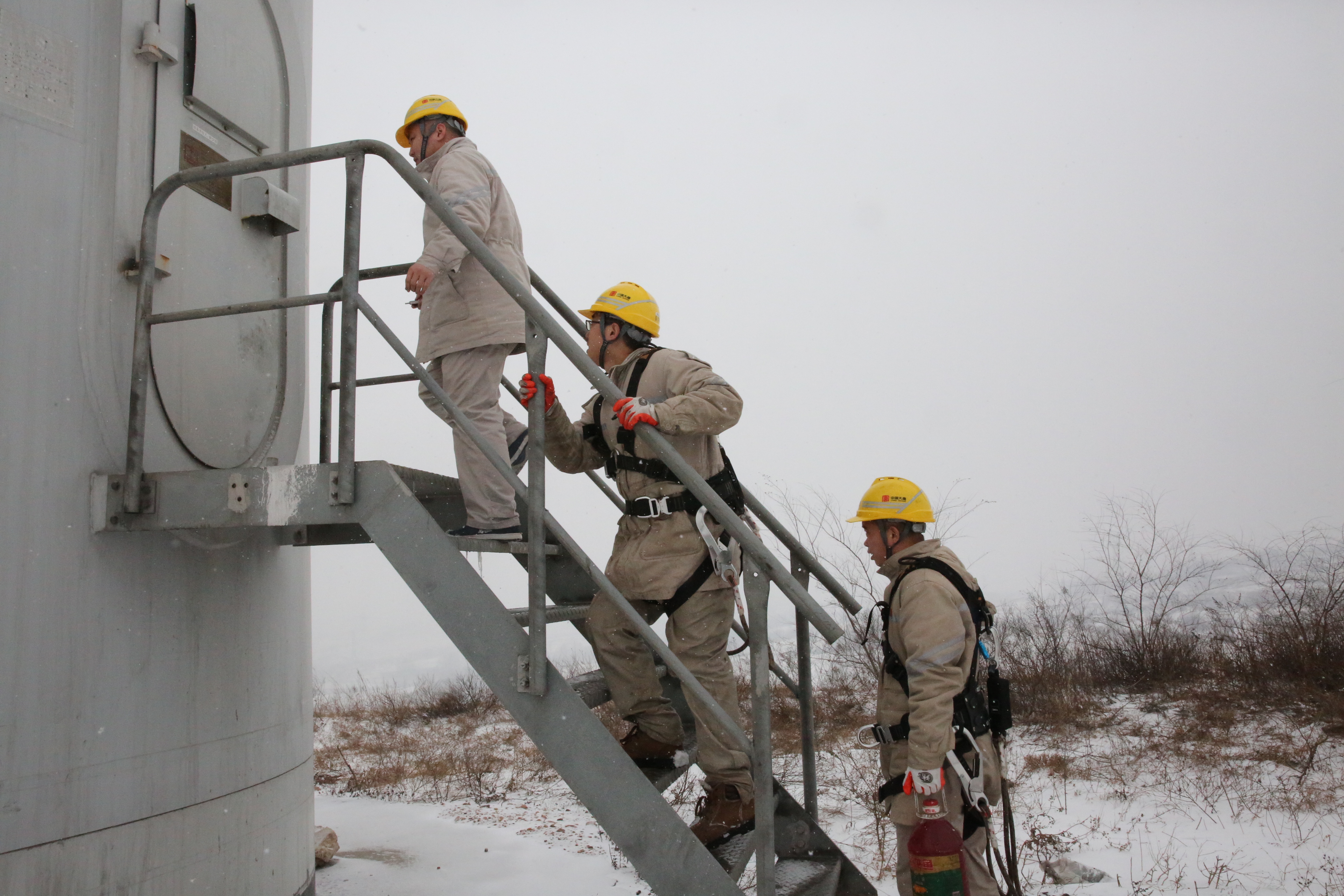 開(kāi)艙門、做安措、“三講一落實(shí)”……風(fēng)機(jī)底下的溫度已逼近零下十度,風(fēng)機(jī)艙外樓梯上的冰溜子直杠杠的掛著,八十多米高的風(fēng)機(jī)機(jī)艙里或許更是一片“凍天”,但他們?yōu)槌弥★L(fēng)期消缺無(wú)所畏懼。