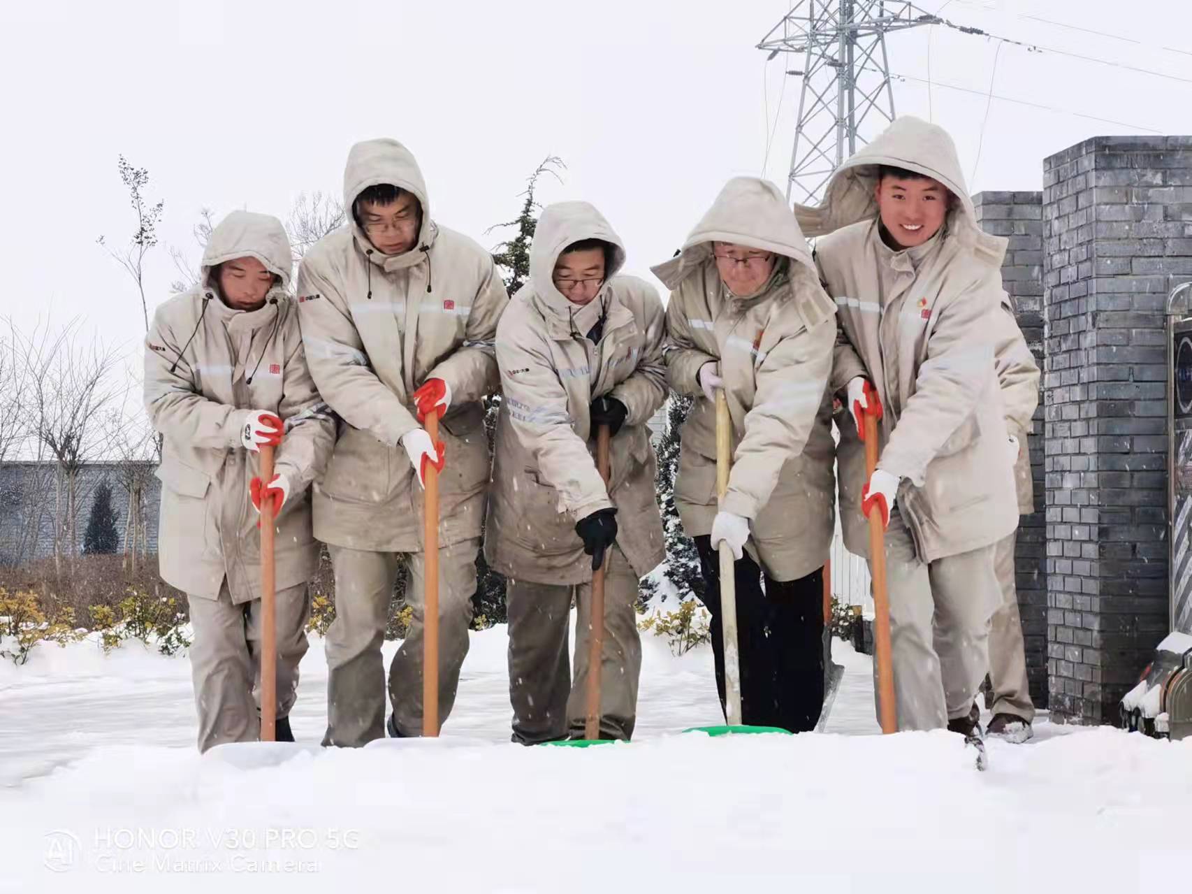 組織升壓站職工對(duì)站內(nèi)道路進(jìn)行清雪。陳偉攝
