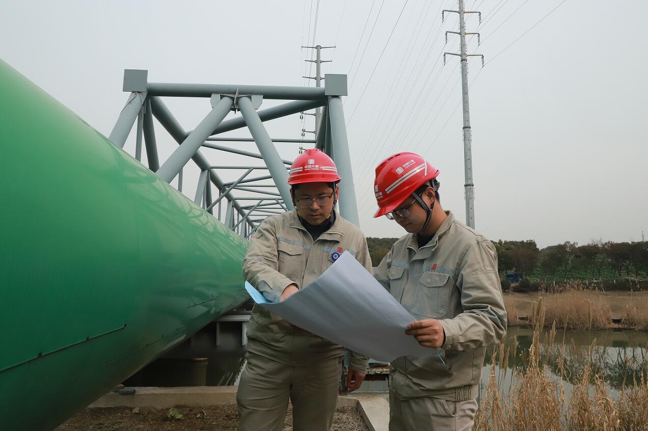 高翔(左一)和同事們巡查供熱管線(馮春雨/攝)