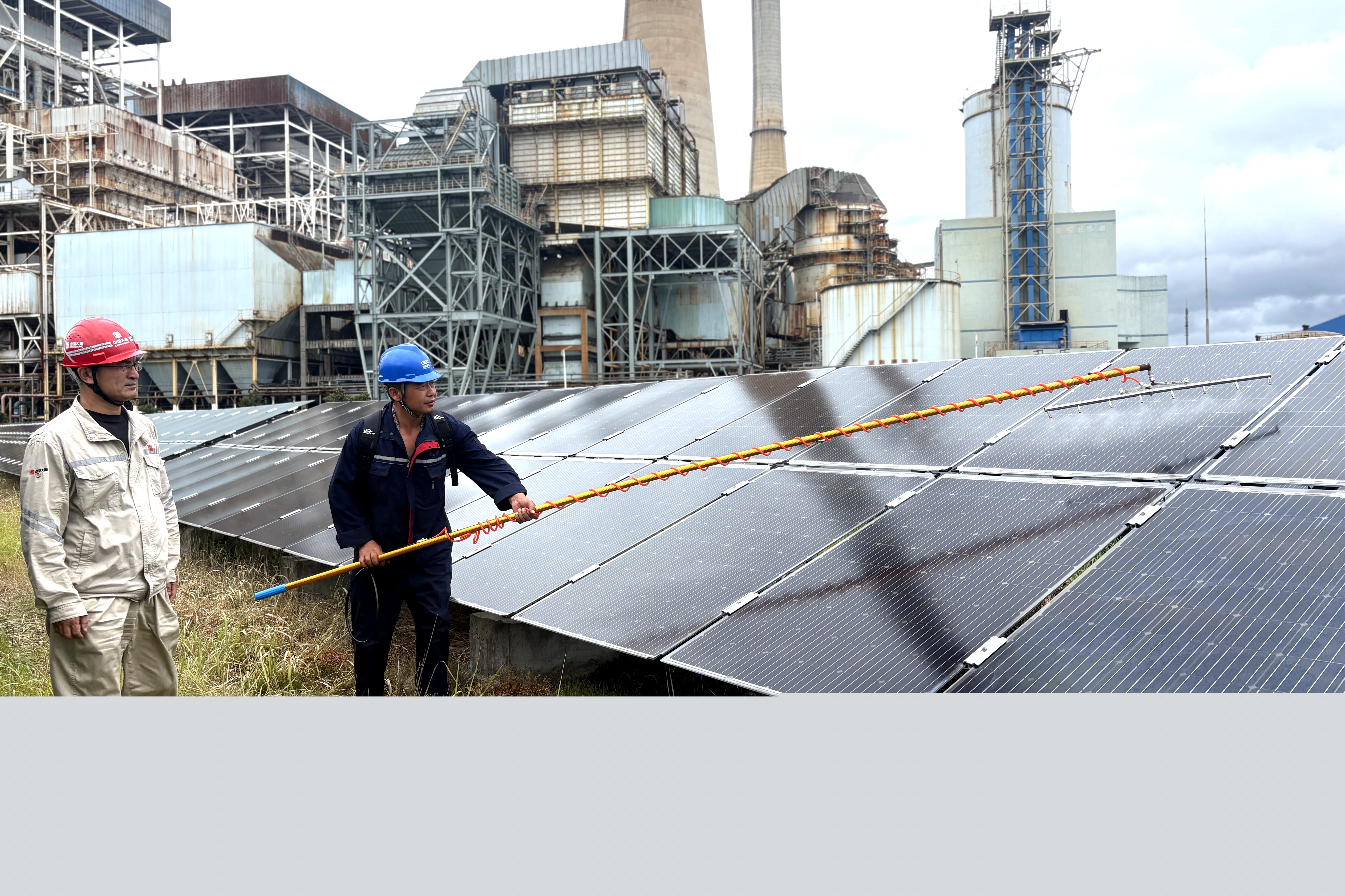 浙江新能源公司烏沙山廠區(qū)光伏電站位于火電廠生產(chǎn)區(qū)域二期場(chǎng)地,這里常年彌漫著白色蒸汽。蒸汽遇冷凝結(jié)后,會(huì)形成“石膏雨”,在光伏板表面結(jié)成水漬般的污垢。過去,該公司采用“人工+機(jī)器人”的清潔方式,往往剛清洗完畢,“石膏雨”便又隨之落下,最多三天,光伏板就會(huì)和未清洗時(shí)一樣。不僅如此,每次清潔時(shí)必須使用專用清洗劑,每塊光伏板要清洗5遍以上,但“細(xì)心呵護(hù)”后發(fā)電效率依舊不理想?!敖M件清洗就是治標(biāo)不治本,不加以重點(diǎn)防治,清洗也是徒勞?!睂幉▍^(qū)域運(yùn)維中心主任曹魯心感慨道。