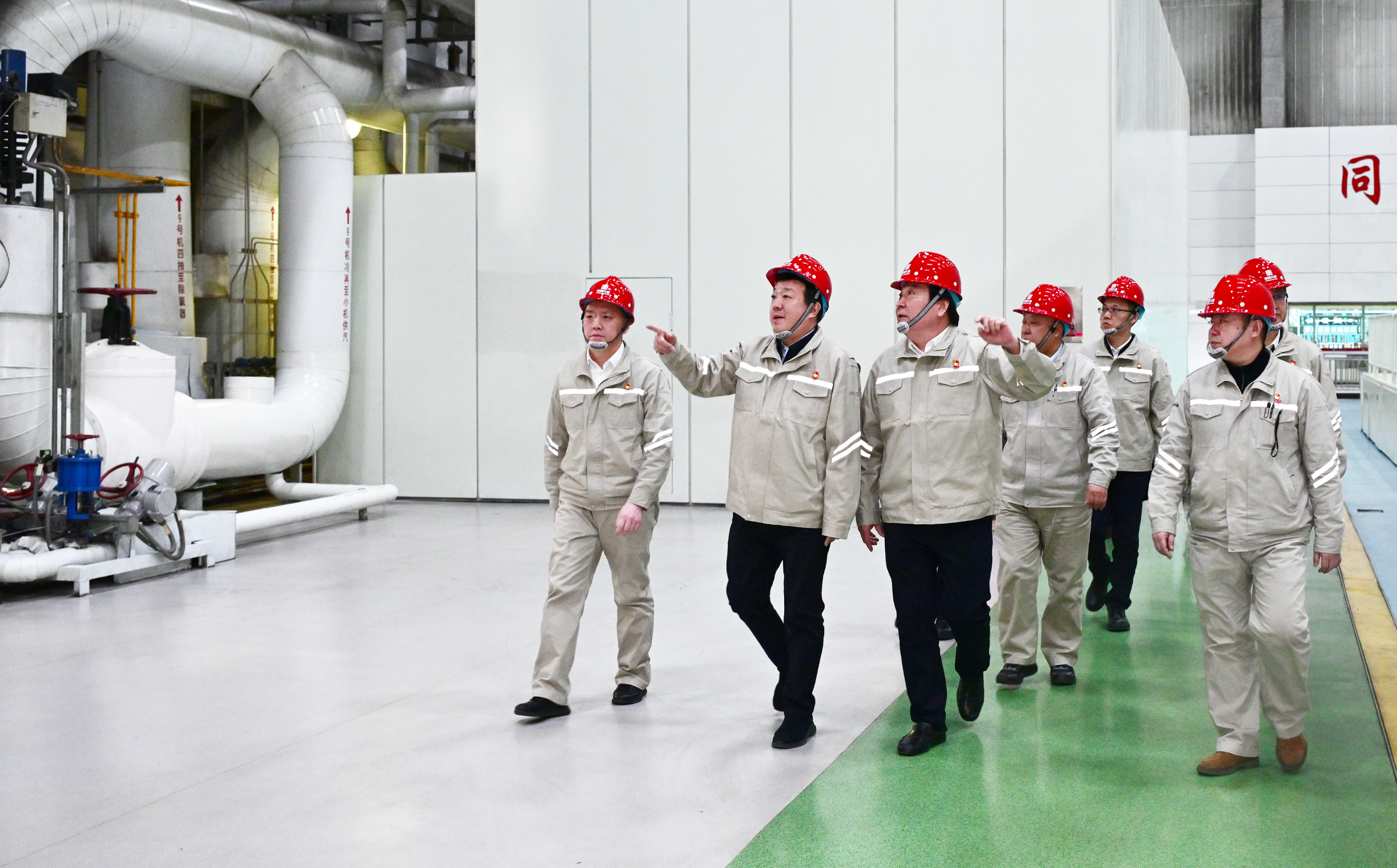 呂軍先后來到托克托發(fā)電公司廠展室、智慧能源中央控制中心、五期生產(chǎn)現(xiàn)場(chǎng)、智慧燃料管控中心,詳細(xì)了解企業(yè)發(fā)展歷程、綠色轉(zhuǎn)型、經(jīng)營(yíng)管理、保暖保供、安全生產(chǎn)等情況,并與一線職工親切交談。