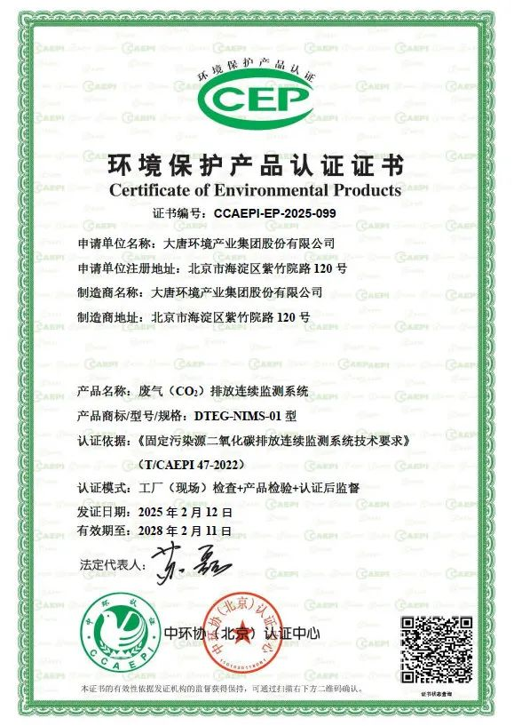 2月12日,大唐環(huán)境自主研發(fā)的二氧化碳排放連續(xù)監(jiān)測(cè)系統(tǒng)成功獲得中國(guó)環(huán)境保護(hù)產(chǎn)品認(rèn)證(CCEP)證書,成為集團(tuán)公司內(nèi)首家通過該認(rèn)證的企業(yè)。這一里程碑式的成就不僅彰顯了大唐環(huán)境在環(huán)保技術(shù)領(lǐng)域的領(lǐng)先地位,更為國(guó)家“雙碳”戰(zhàn)略的實(shí)施注入了強(qiáng)勁動(dòng)力。