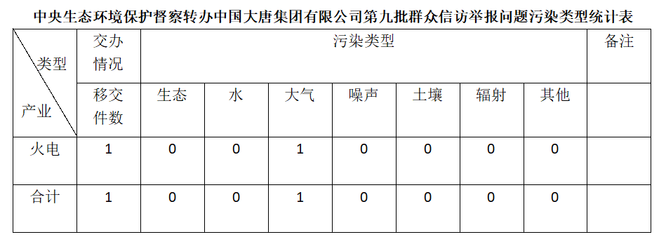 2025年6月12日,中央第七生態(tài)環(huán)境保護督察組向中國大唐集團有限公司移交第九批群眾信訪舉報件,共計1件,為來電舉報,涉及大氣問題1個。所有舉報件辦理工作已第一時間進入調(diào)查核實辦理程序,辦理情況將按照相關要求反饋督察組,并及時向社會公開。