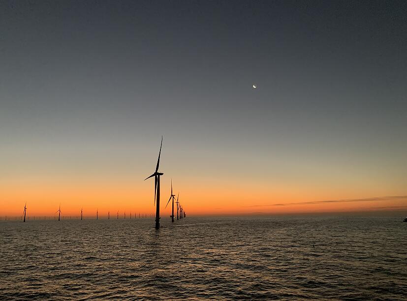 日月同輝的濱海海上風電場(遲慶華/攝)