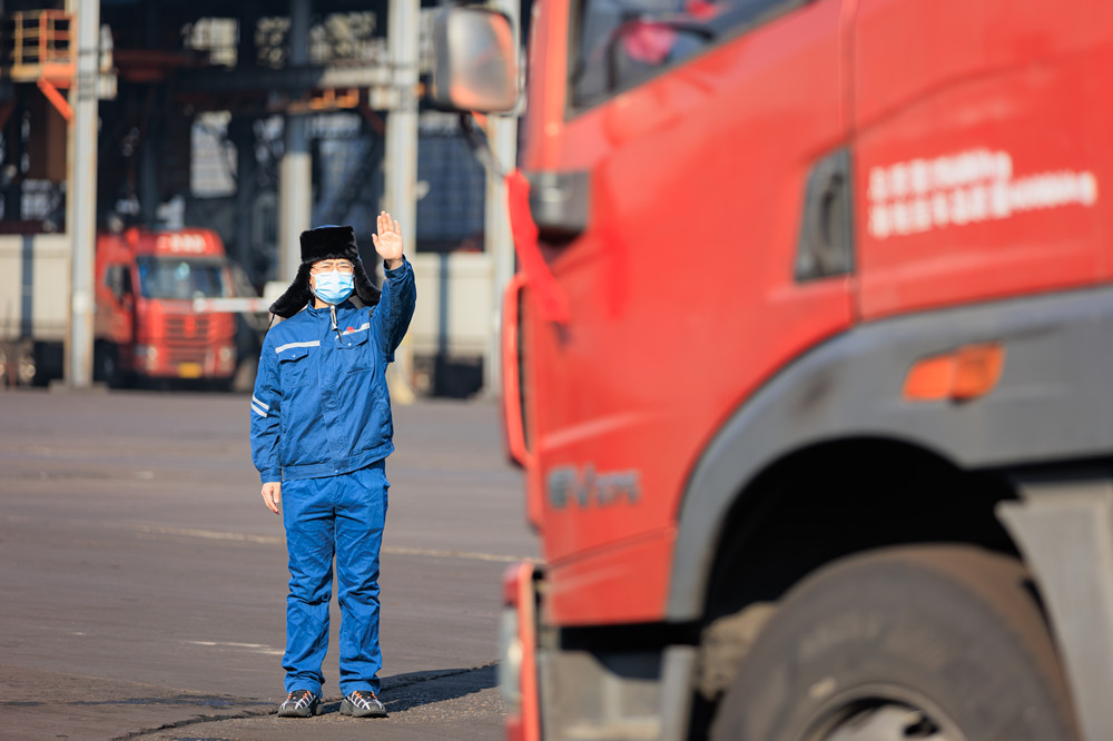 燃料人員有序指揮汽車煤入廠