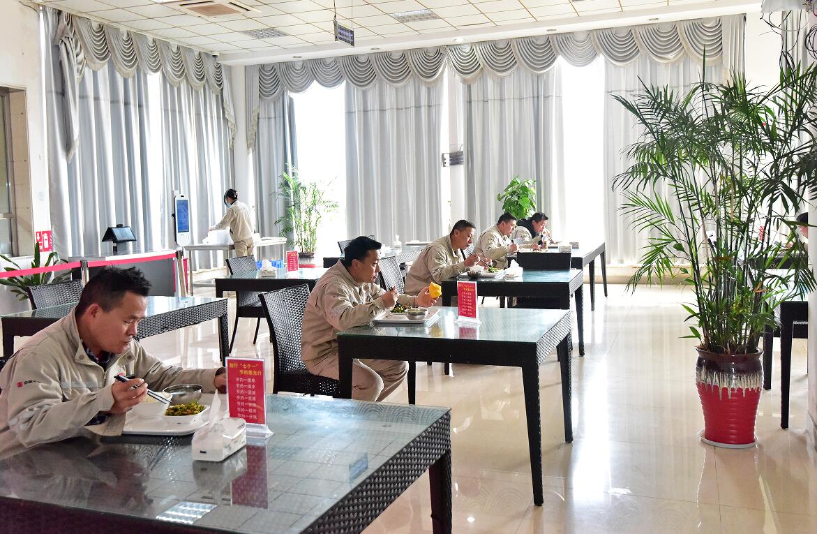為保證公共場(chǎng)所衛(wèi)生安全,該公司嚴(yán)格落實(shí)封閉場(chǎng)所戴口罩、測(cè)溫、消毒等措施,職工食堂內(nèi)分批分時(shí)就餐、同向就坐等以“獨(dú)”攻毒防控措施,已然成為蘇熱人的行動(dòng)準(zhǔn)則。